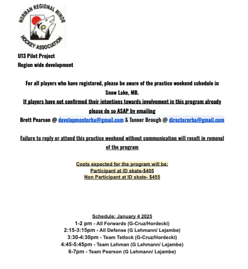 NorMan Regional Minor Hockey will be participating with the Hockey Manitoba Pilot Project aiming to better develop the skill of our hockey players, in U13.