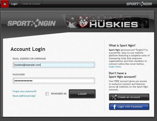 In order to ensure you are getting information, you must have an active email associated with your account. When your child was first registered, an email address given by the person registering. Using that email address, one can log into the Huskies website on the top left of your phone or computer's browser, as in the photo to the left. Alternatively, you can also log in using an your existing personal facebook account. You can also request a new password here as well.